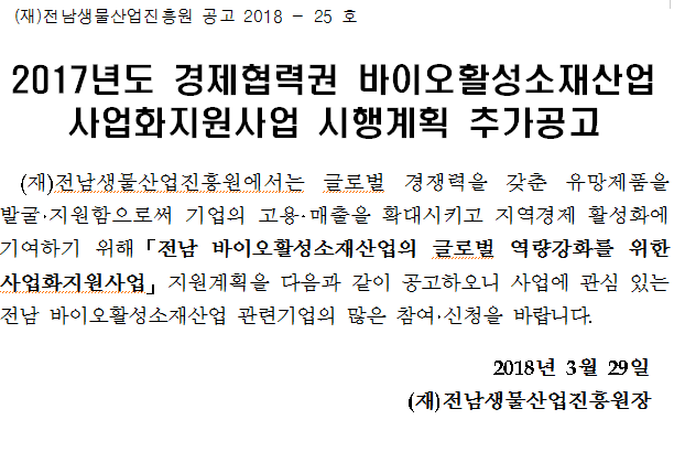 2017년 전남 바이오활성소재 사업화지원사업 추가공고 공고문.hwp