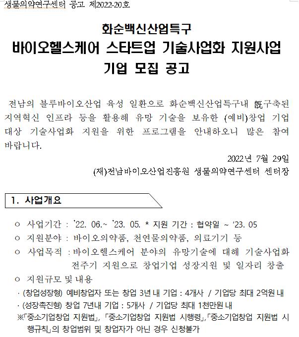 바이오헬스케어 스타트업 기술사업화지원사업 창업(예비)자 모집 공고(게재용).hwp