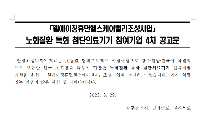 웰에이징휴먼헬스케어 밸리조성사업 모집공고(4차)