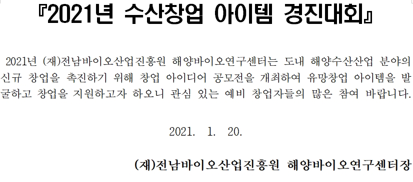 2021년 수산창업 아이템 경진대회 모집공고.hwp