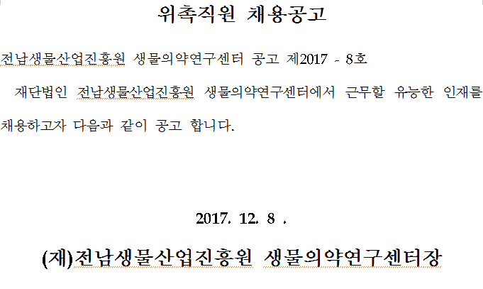 (재)전남생물산업진흥원 생물의약연구센터 위촉직원 채용공고