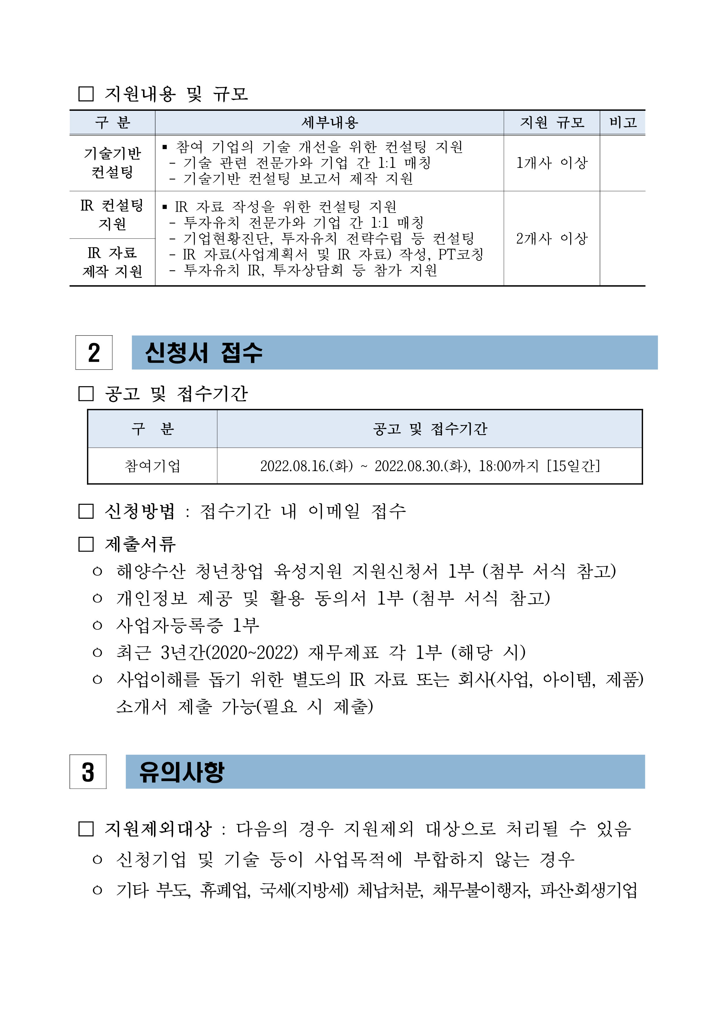 모집공고 2022 창투사업 해양수산 청년창업 육성지원 모집공고문.hwp