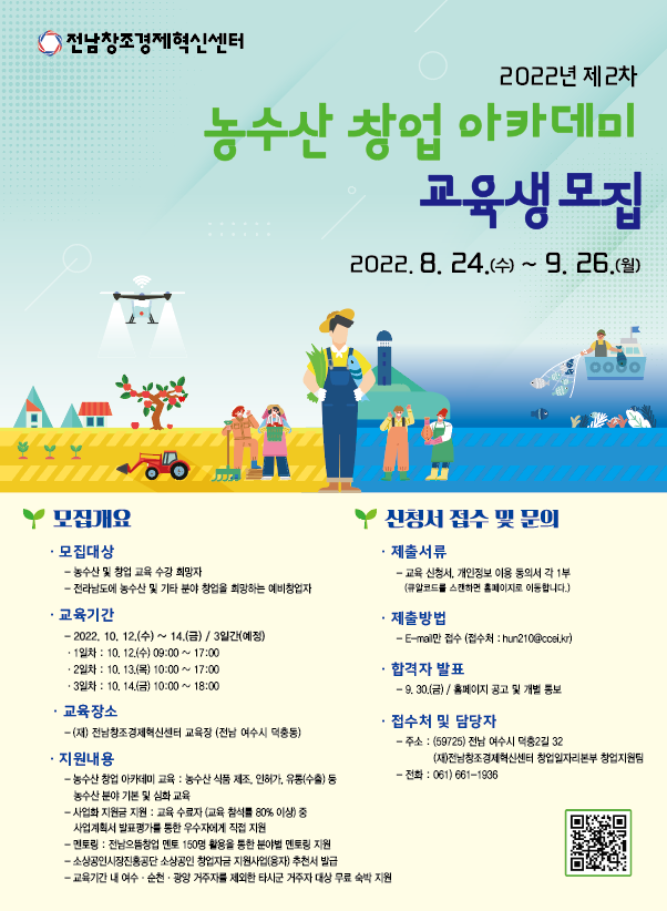 2022년 제2차 농수산 창업 아카데미 교육생 모집 공고