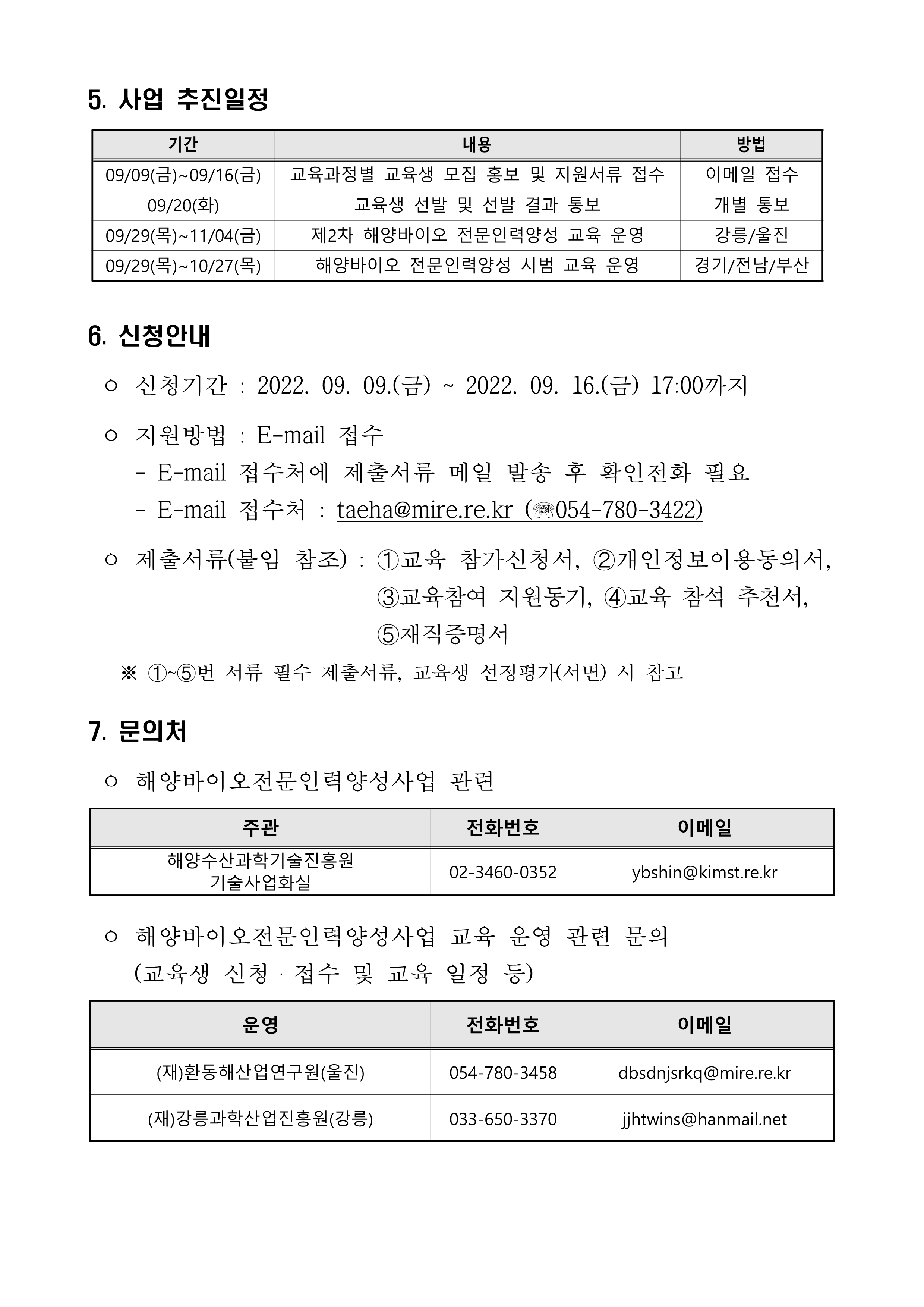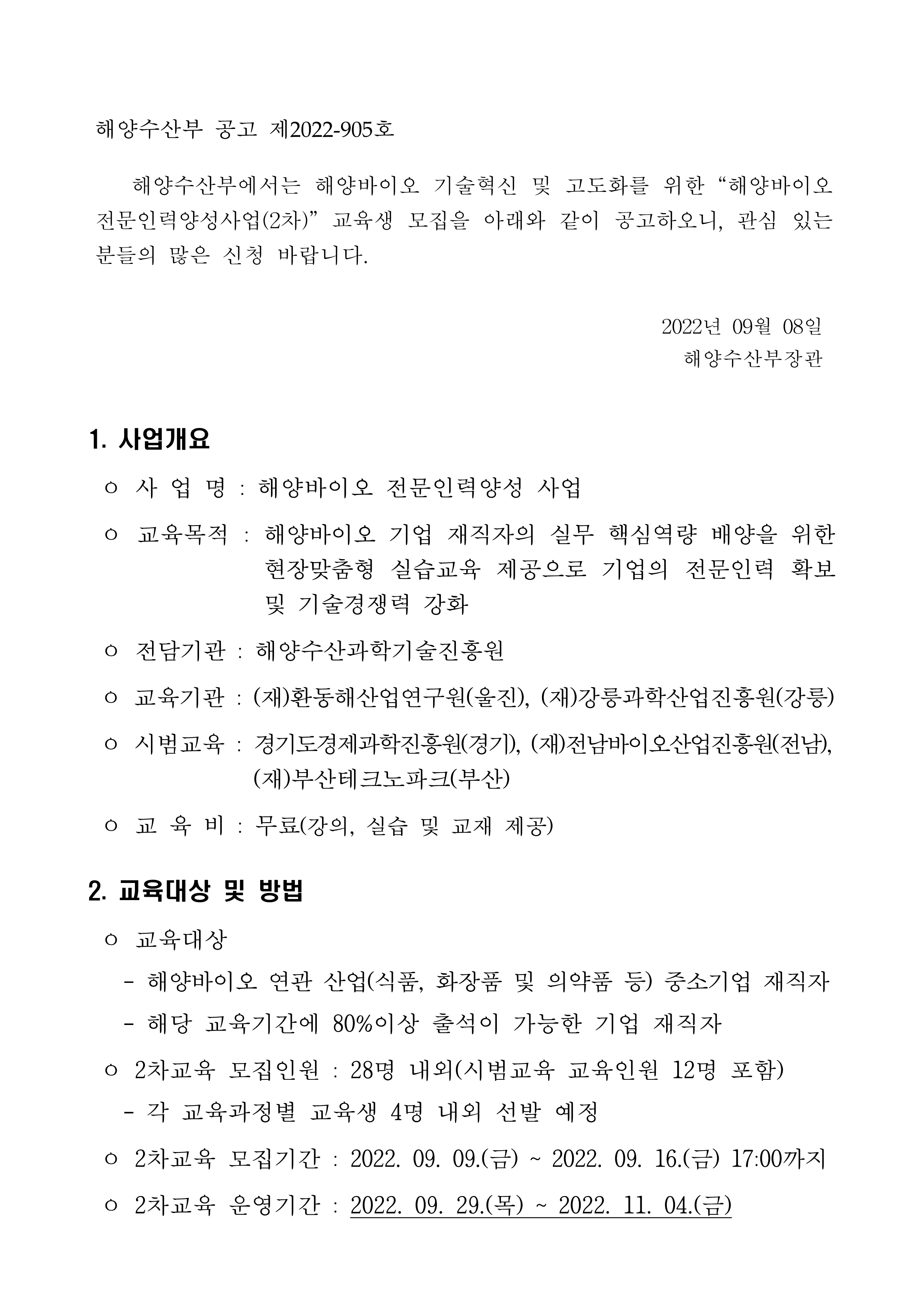2022년 해양바이오 전문인력 양성사업 2차 교육생 모집 공고.hwp