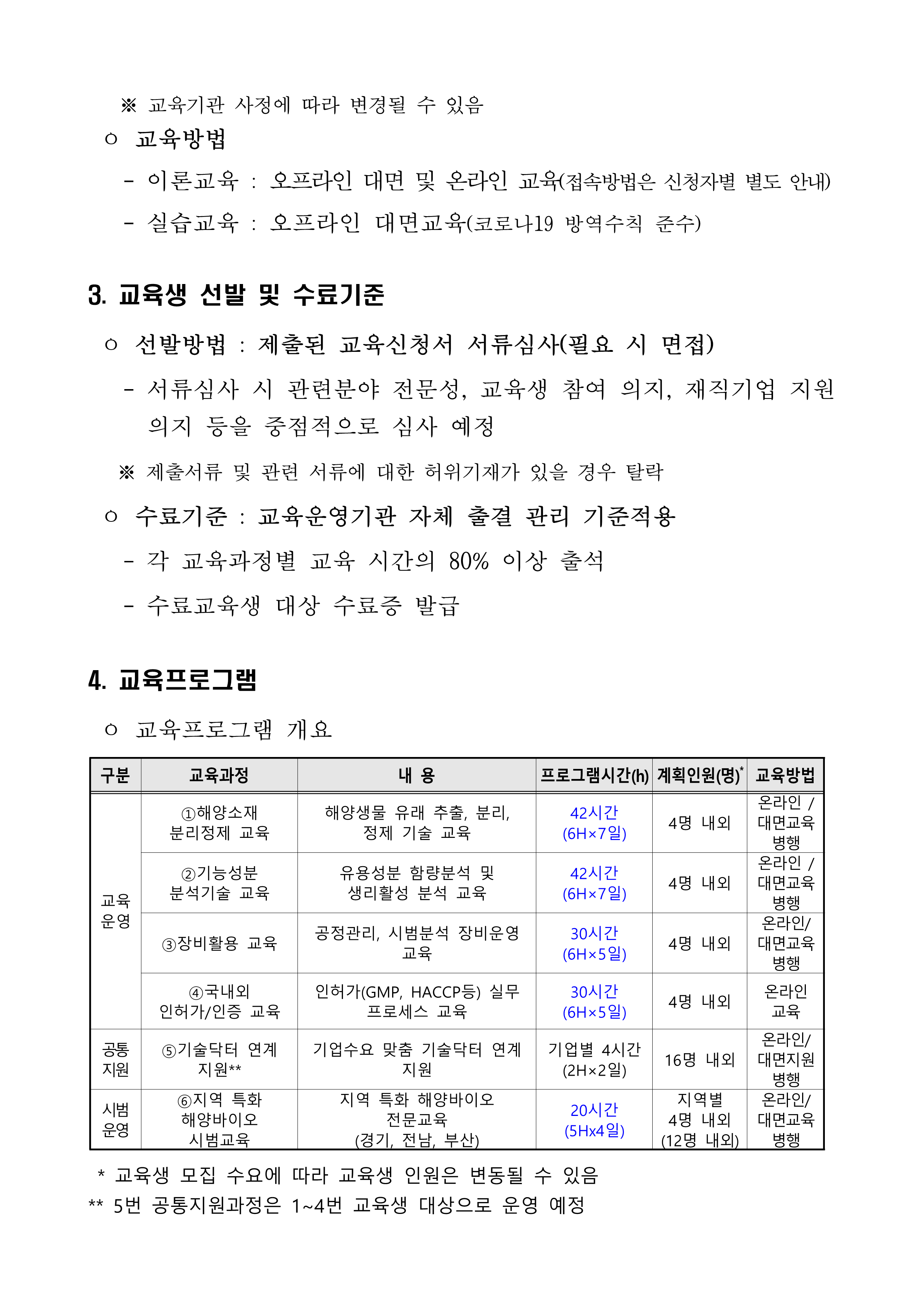 2022년 해양바이오 전문인력 양성사업 2차 교육생 모집공고