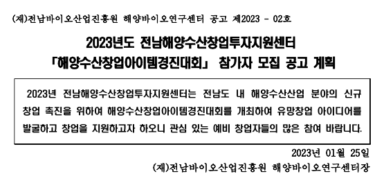 2023 전남해양수산창업투자지원센터 해양수산창업아이템경진대회 개최 계획안.pdf