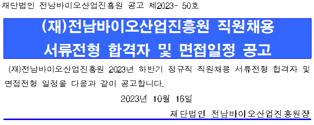 2023년도 하반기 정규직 서류전형 합격자 공고 및 면접전형 일정 안내