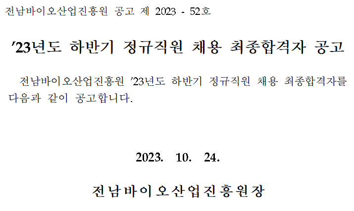 `23년도 하반기 정규직원 채용 최종합격자 공고