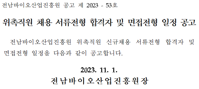 `23년도 4분기 위촉직원 채용 서류전형 합격자 및 면접전형 일정 공고