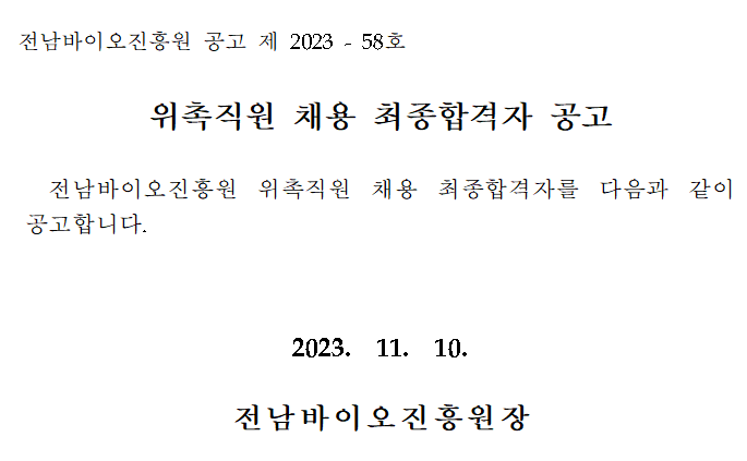 23년도 4분기 위촉직원 채용 최종합격자 공고