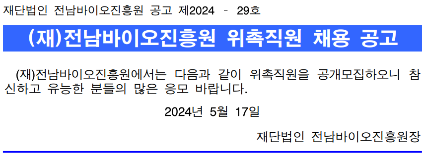 2024년도 1분기 위촉직원 채용 재공고(미응시분야)