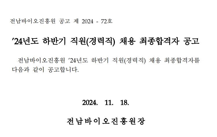 2024년 하반기 직원(경력직) 채용 최종합격자 공고