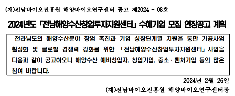 2024 전남해양수산창업투자지원센터 수혜기업 연장공고 계획안.hwp