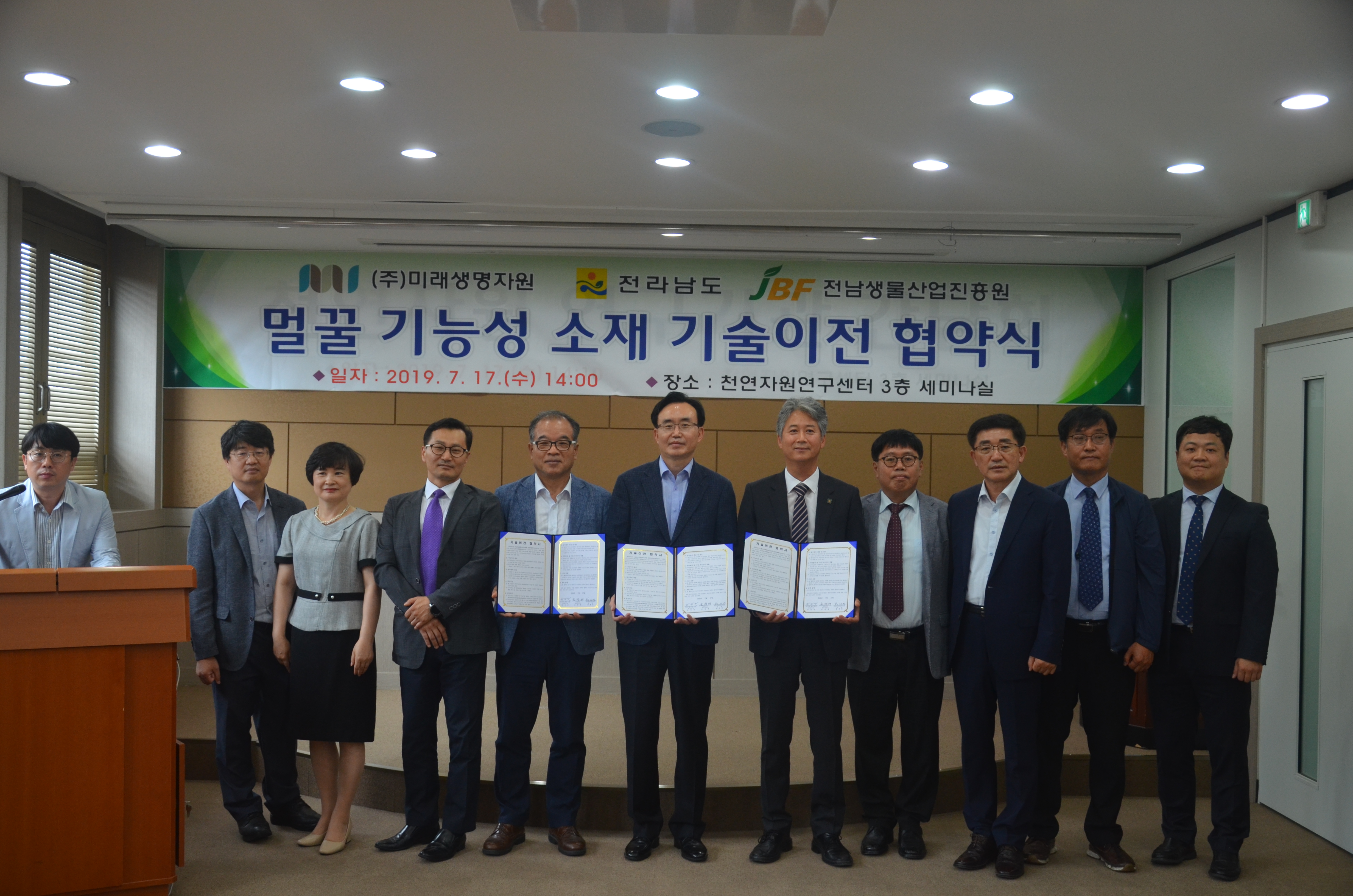 천연자원연구센터는 7월 17일 미래생명자원과 ‘ 멀꿀 추출물을 이용한 간 보호 효과를 갖는 조성물’ 생산에 관한 기술이전 계약을 하였다.
