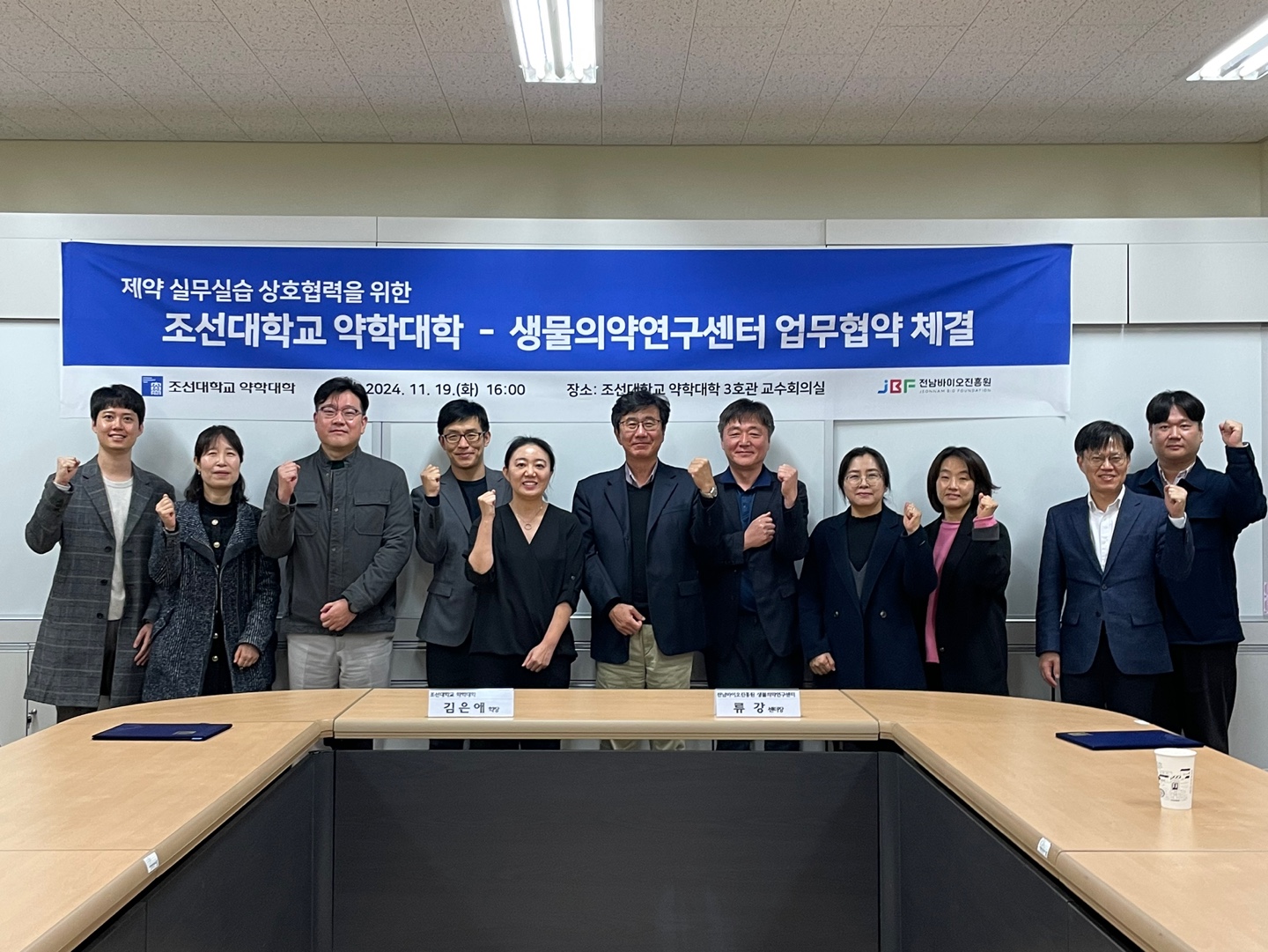 [보도자료] 전남바이오진흥원 생물의약연구센터와 조선대 약학대학, 제약실무실습 협력을 위한 업무협약 체결 20241120.hwp