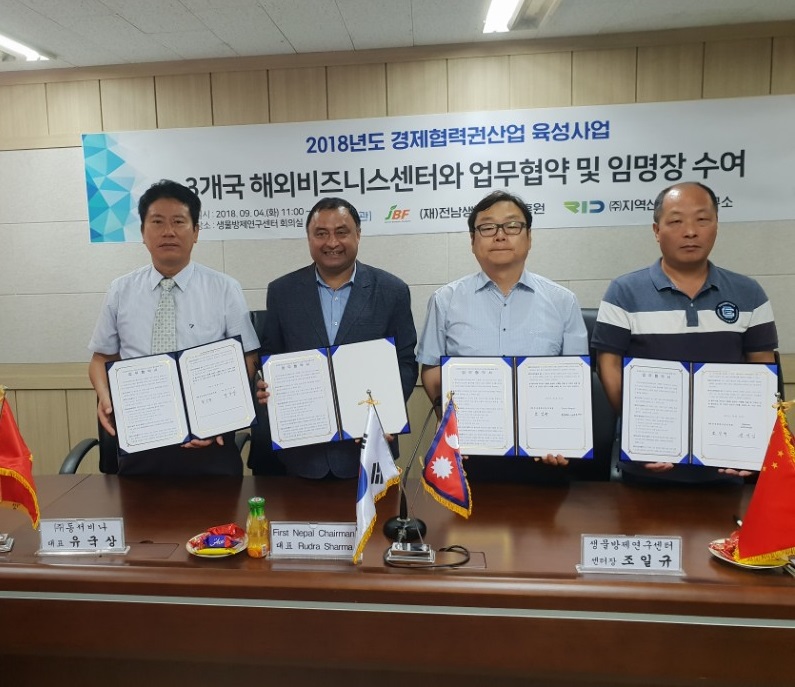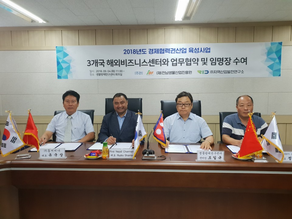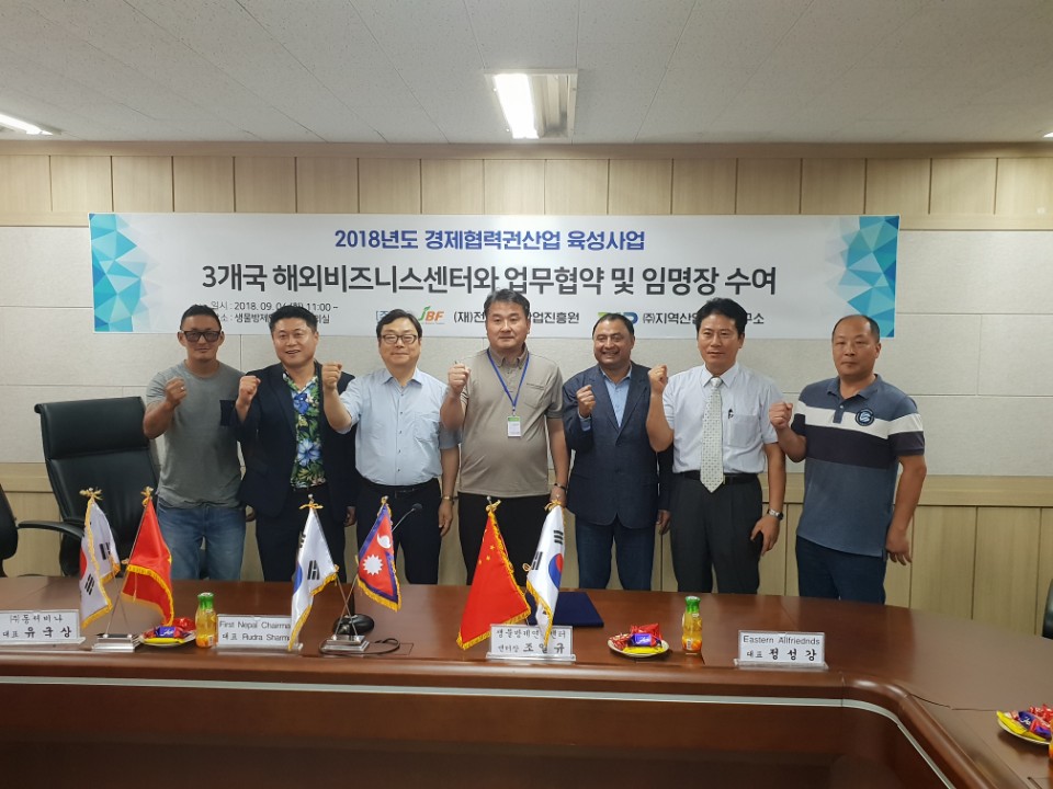 ○ 2018년 경제협력권산업 육성사업 3개국 해외비즈니스센터와 업무협약 및 임명장 수여