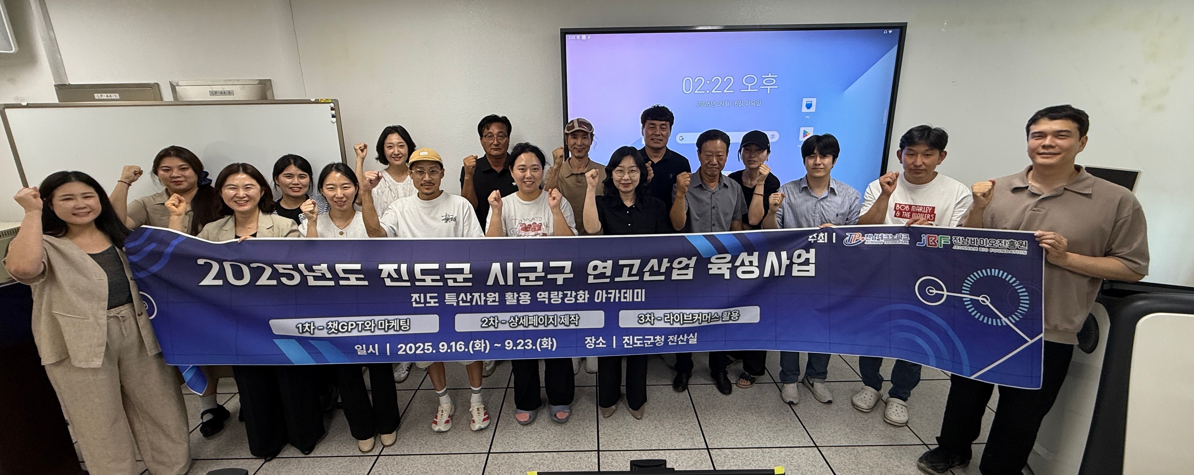 - 진도군 시군구연고산업육성사업 일환으로 AI 활용 온라인 마케팅 아카데미를 9월 16일부터 23일까지 총 3회 개최 예정